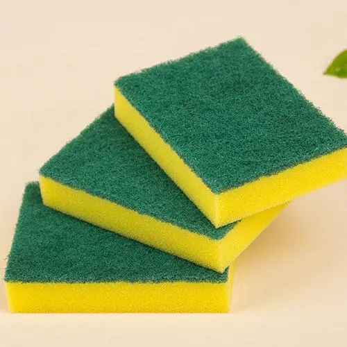 清潔海綿吸水性好起泡豐富,百潔布刮擦力大去污強,海綿百潔布組合之后具有雙重清潔功效,一面海綿的柔軟,一面百潔布的堅硬。黃色海綿復合綠色百潔布是我們常見的,然而黃色海綿的缺點在于,污垢藏匿在海綿孔洞里很難清洗干凈,容易發(fā)霉變質,現(xiàn)在十分流行的神奇魔力海綿擦可以彌補這一缺陷。